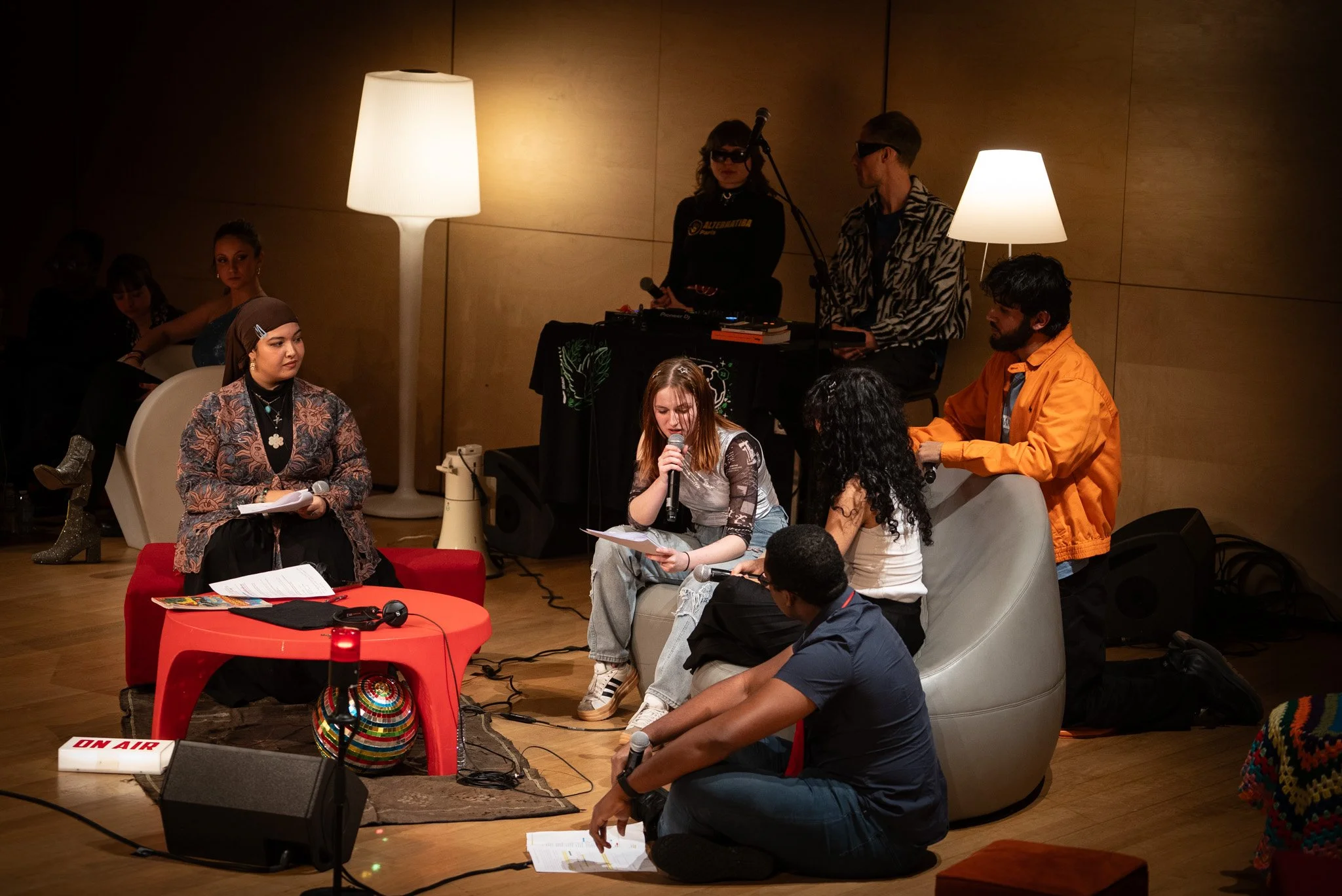 Construction du dispositif radio-scénique mêlant son, plateau et musique live